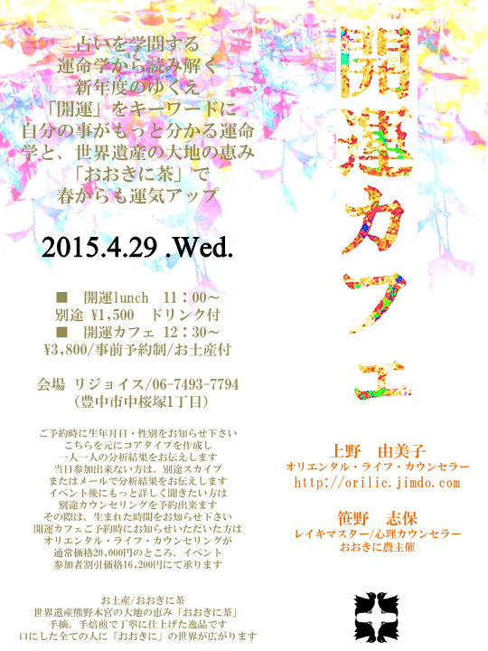 5月10日(日)に東京で「開運カフェ 第2弾」を開催します