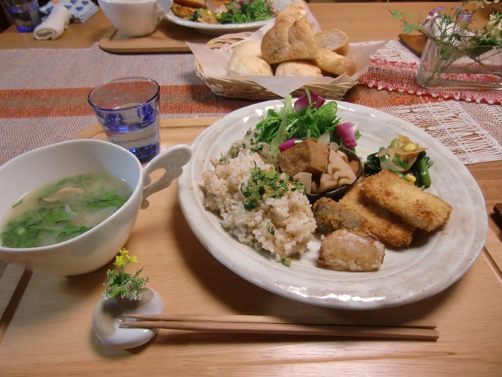 旬の野菜がふんだんに使われたヘルシーなご馳走で、まず腹ごしらえです