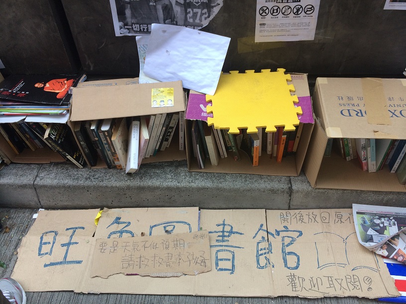 参加者が持ち寄った本を集めた臨時の青空図書館
