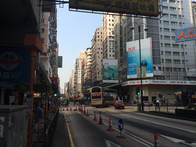 そういえば、ネイザンロードの真ん中を歩いてみると、両側に