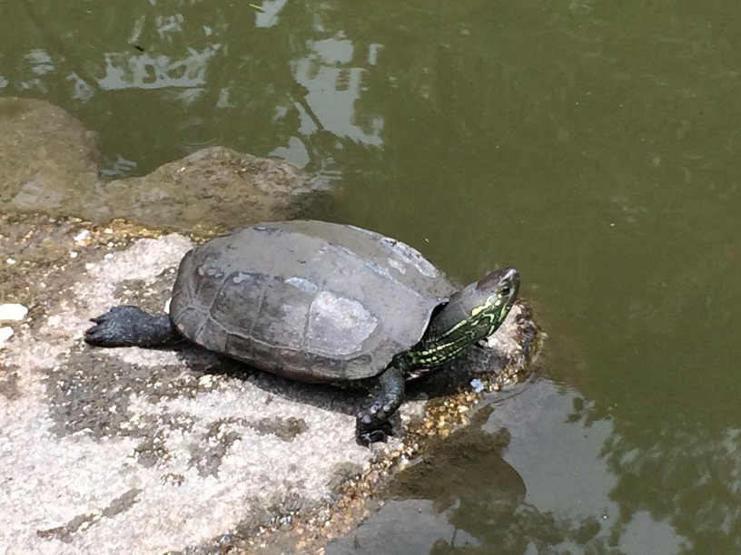 清水寺の出口辺りの池で亀を発見するとemoji