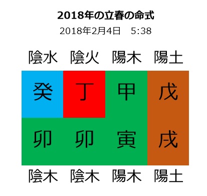 まさにその瞬間に2018年が誕生するものとして陰陽五行で分析し![]()